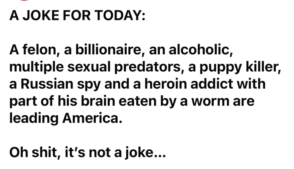 Okay, moving on from the weather and romanticism, we shouldn’t be surprised by the amount of crap that is being thrown against the wall to see what will stick. In an earlier post, I wrote that the goal, in Steve Bannon’s words, is to “flood the zone with s**t,” and boy are they accomplishing the goal. There was so much of it this week I could hardly keep track of it. The actions taken by co-presidents Musk and Trump are already starting to create hardships for the ‘American Common Man.’ During the week thousands of federal government workers were fired by the DOGE team and their ally the PINO (President In Name Only). Probationary employees from the Department of Veterans Affairs, Department of Education, U.S. Forest Service, General Services Administration, Office of Personnel Management, Small Business Administration, National Nuclear Security Administration, and Centers for Disease Control and Prevention were fired this week. And, just last night I saw on the 5:00 News over 100 employees from the Bonneville Power Administration in Oregon are being fired. I’m sure glad I have a good wood stove and generator for when the lights and furnace go out. The report indicated that these employees were from very critical areas of the BPA. I saw many headlines this week that were basically “Trump’s mass layoffs leave federal employees baffled and angry.” Some of these tRumpsters are starting to see that they made a big mistake when they voted in November. One HR manager with the VA said that he voted for Trump in the last three presidential elections and “will never make that mistake again. I have not voted for a Democrat in two decades. I will vote Democrat in the midterms and the next presidential race for sure.”