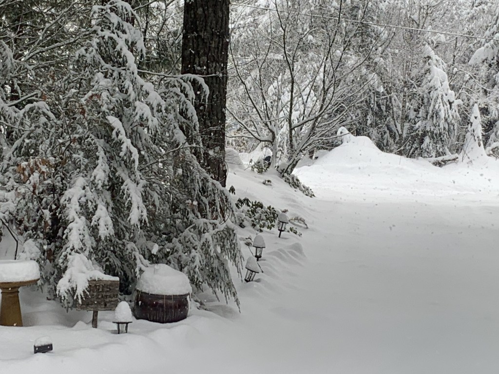 Happy Saturday!! I hope y’all had a happy and romantic Valentine’s Day without feeling too overwhelmed by Week 4 of ‘you know what.’ I know that there were a lot of students and teachers jumping with joy after getting that anxiously awaited announcement on Thursday and Friday – “No School today due to inclement weather.” Hearing those words is as much fun as opening presents on Christmas morning. It’s a winter wonderland up here on the mountain. Thankfully, the roads are pretty clear of snow and ice right now. Our road was plowed twice yesterday by the County, the second one at 9:15 pm last night by a huge road grader type snowplow. We got as much snow overnight Thursday into Friday as Timberline Lodge did – over 12”.